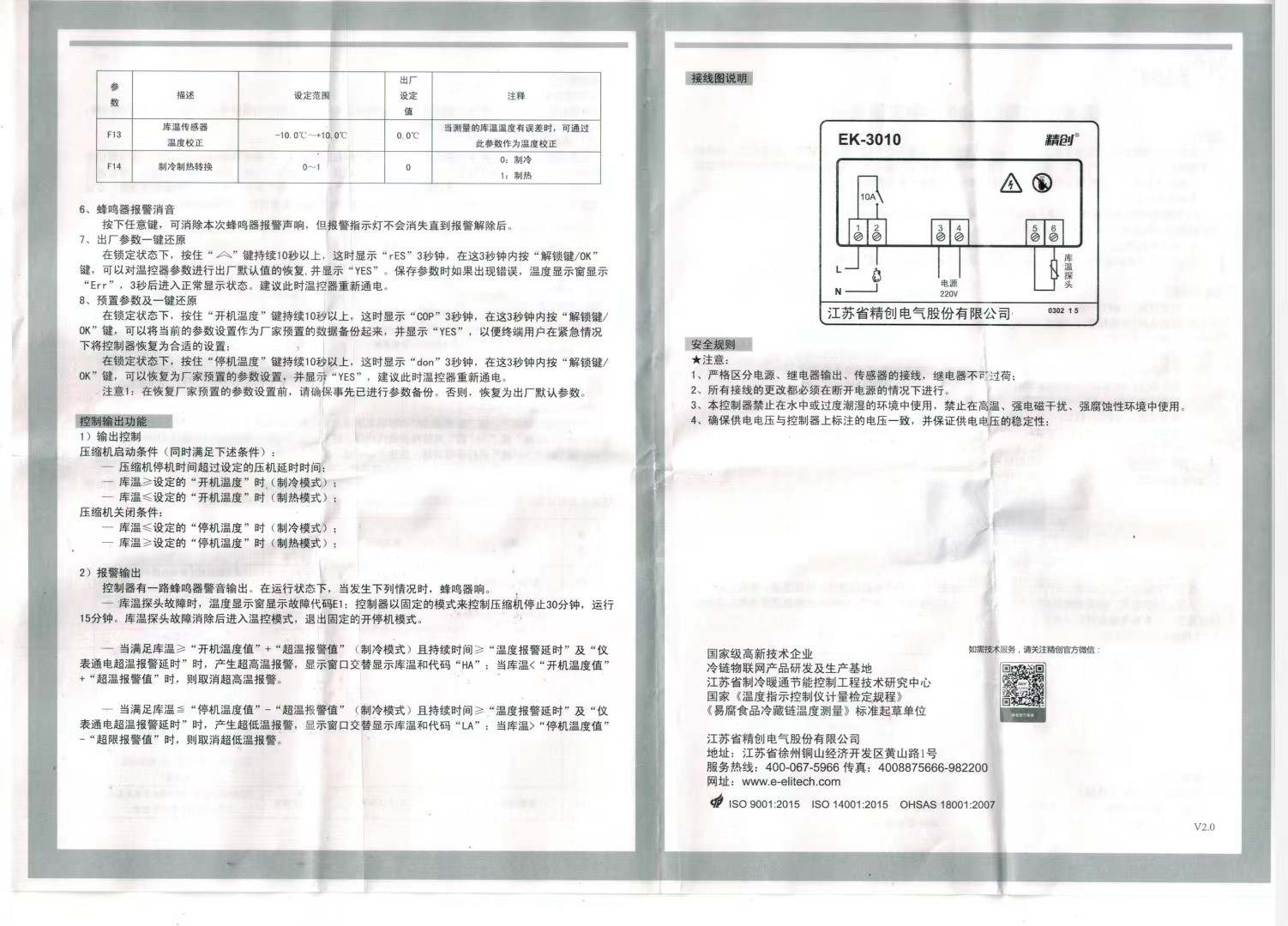 溫控器-精創-EK-3010說明書 、 精巧、精度高、性能穩定、觸摸按鍵。